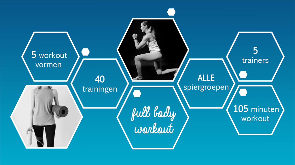 Elk van de trainers heeft een (of meerdere) eigen specifieke trainingsmethode, zij wisselen onderling af, waardoor je een erg gevarieerde lessenreeks krijgt!