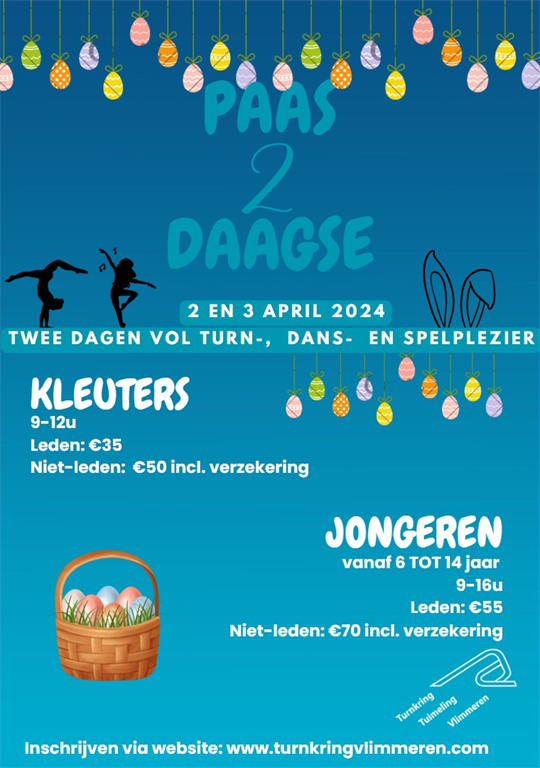 Twee dagen vol turn- dans- en spelplezier voor zowel leden als niet-leden op dinsdag 2 en woensdag 3 april.